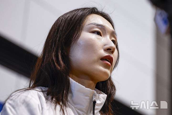 [인천공항=뉴시스] 정병혁 기자 =  2026 밀라노·코르티나담페초 동계올림픽에 출전하는 최민정이 30일 인천국제공항 제2터미널을 통해 출국하기에 앞서 취재진 질문에 답하고 있다. 2026.01.30. [email protected]