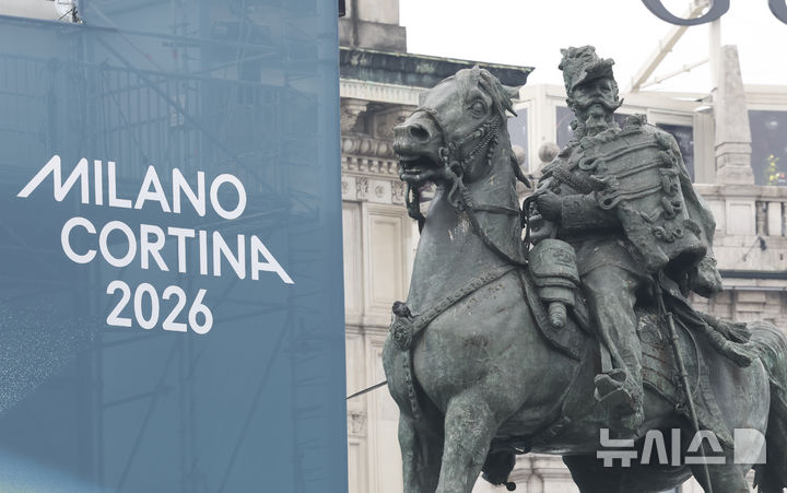 [밀라노=뉴시스] 김근수 기자 = 2026 밀라노·코르티나담페초 동계올림픽 개막을 사흘 앞둔 3일(현지 시간) 이탈리아 밀라노 두오모 광장에 놓인 빅터 엠마누엘레 2세 기념 동상이 놓여 있다. 2026.02.03. [email protected]