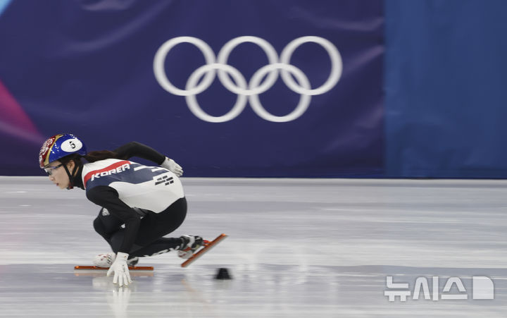 [밀라노=뉴시스] 김근수 기자 = 쇼트트랙 최민정이 3일(현지 시간) 이탈리아 밀라노 아이스스케이팅 아레나에서 남자 선수들과 훈련을 하고 있다. 2026.02.03. [email protected]
