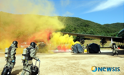 화생방 훈련 하는 24화학특수임무대대 요원들