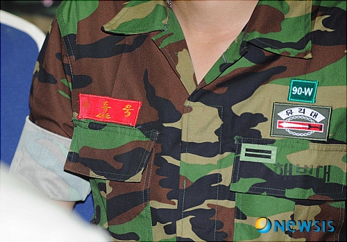 【김포=뉴시스】사진공동취재단 = 해병대 병영문화혁신대토론회가 18일 경기도 김포시 해병대 2사단에서 열렸다. 해병대 붉은 명찰.