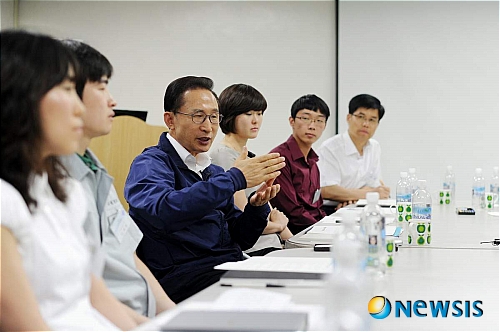 중소기업 연구원 이야기 하는 이명박 대통령