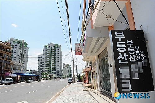 【프놈펜(캄보디아)=뉴시스】임영주 특파원 = 국회 저축은행국정조사특위가 25일부터 본격화 되는 가운데 지난 13일 찾은 캄보디아 프놈펜 근교의 캄코시티 건설 현장. 캄코시티 정문 앞의 한국 부동산 중개소들의 문미 닫혀 있다.