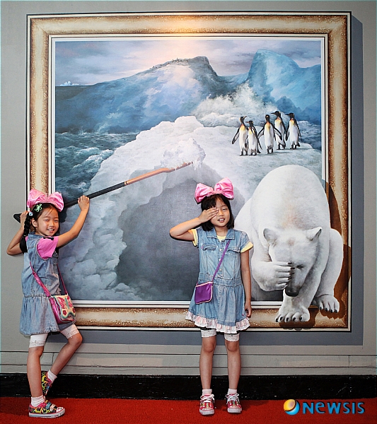 【서울=뉴시스】박동욱 기자 = 28일 오전 서울 송파구 롯데월드를 찾은 학생들이 '신기한 미술관'이벤트존에 새롭게 마련된 겨울풍경 작품을 배경으로 사진을 찍으며 즐거운 시간을 보내고 있다. (사진=롯데월드 제공)