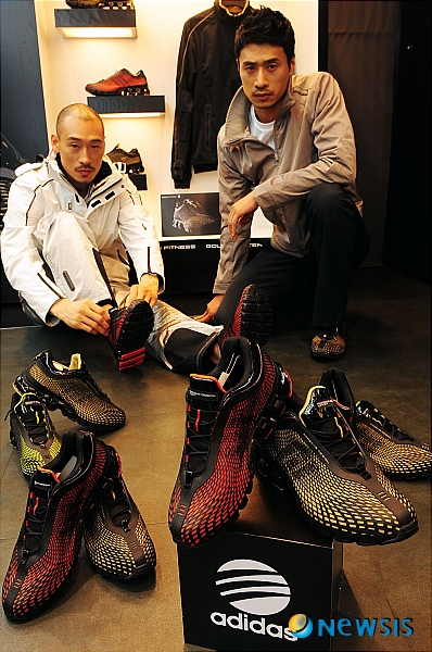 【서울=뉴시스】허경 기자 = 3일 오전 서울 강남구 신사동 아디다스 퍼포먼스 매장에서 열린 '아디다스 포르쉐 디자인 스포츠 F/W 컬렉션'에서 런닝화 '바운스 에스 투'를 선보이고 있다.