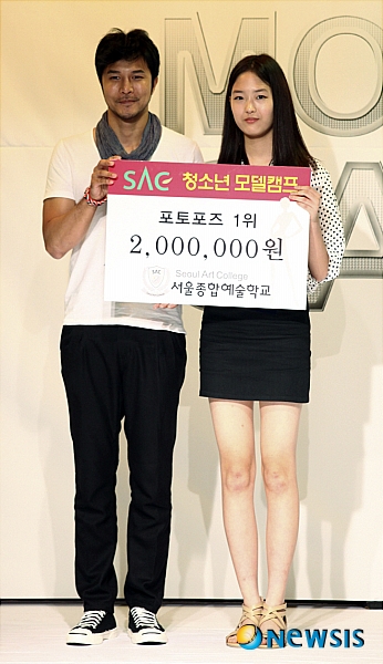 【서울=뉴시스】최동준 인턴기자 = SAC 청소년 모델캠프가 18일 강남구 서울종합예술학교 SAC 아트센터에서 열린 가운데 모델 오병진(왼쪽)과 포토포즈 1위를 차지한 이환희씨가 기념촬영을 하고 있다. (사진=서울종합예술학교 제공)