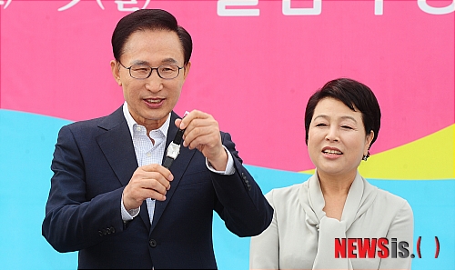【서울=뉴시스】박상훈 기자 = 이명박 대통령이 9일 오후 올림픽공원에서 열린 '제2회 대한민국 나눔대축제' 애장품 경매에서 김윤옥 여사의 스카프가 110만원에 판매되자 예정에 없었던 자신의 손목시계를 풀어 경매품으로 내놓고 있다. 경매로 얻은 수익은 소아암 희귀 난치성 어린이를 위해 전액 사용된다.