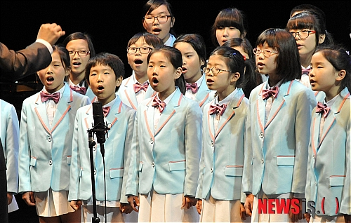 【서울=뉴시스】최동준 기자 = 18일 오후 서울 석관동 한국예술종합학교 예술극장에서 열린 '예술꽃 씨앗학교 어울림 뜨락' 개막식에서 인제남초등학교 합창단이 공연을 선보이고 있다. 예술꽃 씨앗학교는 문화 소외지역의 소규모 초등학교 학생들이 학교에서 미술, 국악, 뮤지컬 등 문화예술 활동을 통해 감수성과 창의력을 기르는 교육을 받고 있다.
