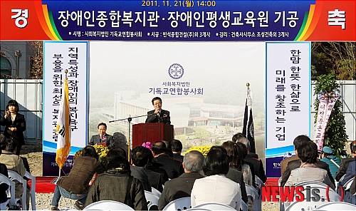 【대전=뉴시스】김현진 기자 = 대전시 서구는 21일 오후 가수원동에서 박환용 구청장을 비롯한 지역주민 300여명이 참여한 가운데 서남부 생활권역 장애인의 숙원사업인 장애인종합복지관 및 평생교육원 기공식을 가졌다. 장애인종합복지관은 총사업비 170억원을 투입, 도안택지개발지구 2블록내에 부지 6607㎡, 지하 1층, 지상 3층, 연면적 6,216.94㎡ 규모로 2012년 11월 준공될 예정이다.(사진= 서구청 제공)