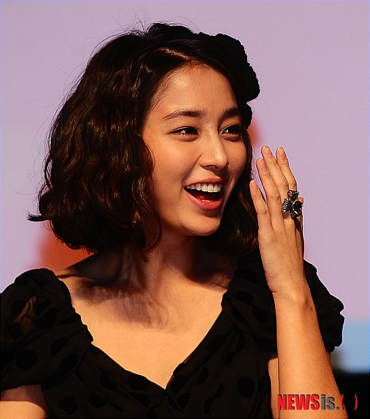 【서울=뉴시스】박종민 기자 = 배우 이민정이 6일 오전 서울 이화여고백주년기념관에서 열린 영화 '원더풀 라디오' 제작발표회에서 미소짓고 있다.