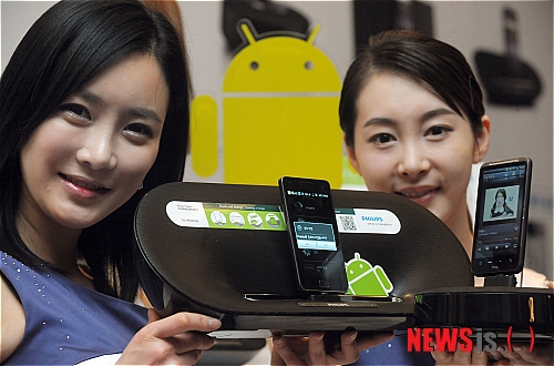 【서울=뉴시스】박동욱 기자 = 필립스전자가 6일 오전 서울 중구 플라자호텔에서 안드로이드 휴대폰을 도킹해서 사용 가능한 '피델리오 도킹오디오'시리즈를 선보이고 있다. 총 4종의 시리즈로 출시한 도킹오디오는 특허 받은 플렉시독(FlexiDock)장착으로 어떤 안드로이드 폰이든 간편하게 최상의 음질로 음악을 감상할 수 있으며, 동시에 휴대폰 충전도 가능하다.