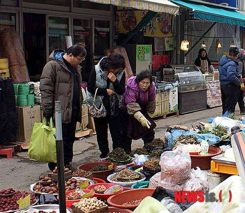 【경산=뉴시스】김재욱 기자 = 정월대보름을 앞둔 5일 대보름 음식을 준비하려는 시민들의 발길이 전통시장에 이어졌다. 경북 경산의 한 시장에서 시민들이 음식재료를 사려는 모습.