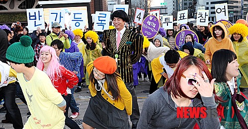 【서울=뉴시스】박종민 기자 = 유시민 통합진보당 공동대표가 7일 오후 서울광장에서 열린 투표 독려 캠페인 공연 '개념찬 콘서트 바람'에서 투표 독려 퍼포먼스를 하고 있다.