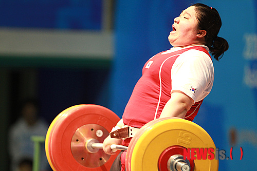 【평택=뉴시스】강종민 기자 = 29일 오후 경기 평택 이충문화센터에서 열린 2012평택아시아역도선수권대회 여자 +75㎏에서 장미란 선수가 용상 165㎏을 들어 올리고 있다.