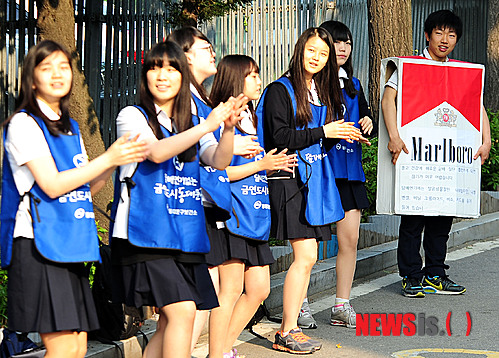 【서울=뉴시스】박주성 기자 = 청량고등학교 학생들이 18일 오전 서울 동대문구 청량리동 청량고등학교 정문에서 금연 캠페인을 벌이고 있다.