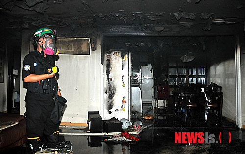 【서울=뉴시스】고범준 기자 = 마포소방서(서장 김선영)가 11일 오전 6시 50분께 마포구 도화동 우성아파트에서 화재가 발생했다고 밝혔다. 화재는 인명피해 없이 1500만원의 재산피해를 내고 12분만에 진압되었으며 발화원인은 김치냉장고의 전기합선으로 추정, 현재 정확한 원인을 조사중에 있다. (사진=마포소방서 제공)