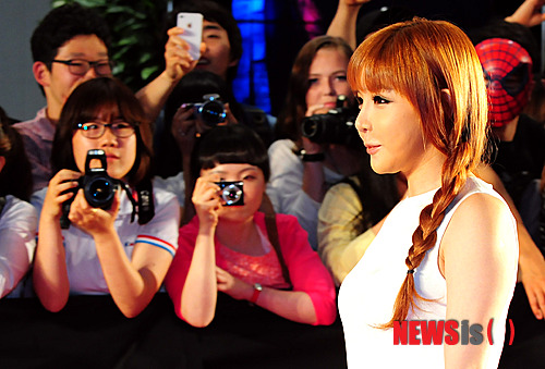 【서울=뉴시스】전신 기자 = 14일 오후 서울 강서구 롯데몰 김포공항에서 열린 할리우드 영화 '어메이징 스파이더맨' 레드카펫에서 걸그룹 '2NE1' 박봄이 걸어 들어오고 있다.