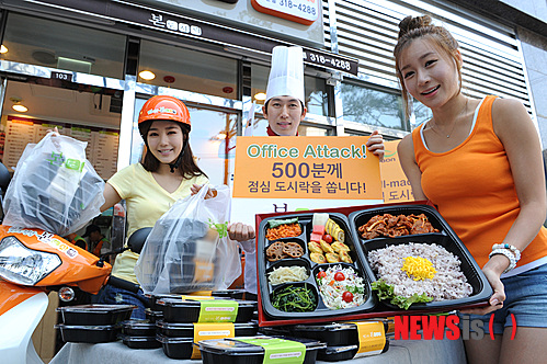 【서울=뉴시스】김영욱 기자 = 본아이에프의 프리미엄 한식도시락 브랜드 본도시락(www.bonif.co.kr)이 20일 오전 서울 중구 회현동 본도시락 회현점에서 사무실로 도시락을 배달해주는 '웰빙 도시락 어택' 이벤트를 열고 있다. 이 날부터 한 달간 진행되는 이 행사는 홈페이지를 통해 이벤트에 응모한 고객 중 추첨을 통해 5주간 매주 10명을 선발, 총 500개의 도시락을 사무실로 배달해준다.