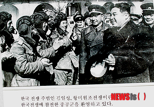 전시회에는 참전용사들과 6.25를 체험한 많은 한인들이 찾아와 관람하며 비극의 그날을 떠올리는 모습들을 볼 수가 있었다. 이날 전시된 사진들은 수복 동지회 안재득 회장이 미국에서 수집 소장한 사진들로 한국전쟁의 귀한 자료들이다. 전시회는 7월 2일까지 열린다. 사진은 한국전쟁 주범인 김일성, 항미원조전쟁이란 명목으로 한국전쟁에 참전한 중공군을 환영하고 있다.