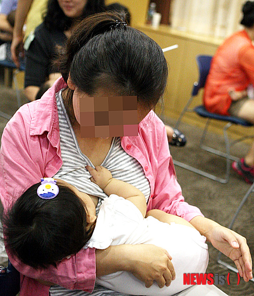 【울산=뉴시스】고은희 기자 = 8일 오후 울산시청 본관 2층 시민홀에서 울산시간호사회(회장 최귀윤) 주관으로 열린 제8회 건강한 모유수유아 선발대회에 참가한 어머니가 모유 수유를 하고 있다.