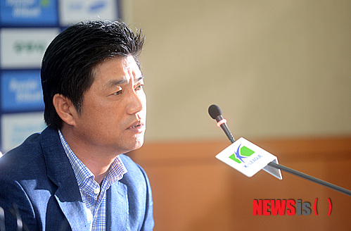 【서울=뉴시스】고범준 기자 = 16일 오전 서울 종로구 신문로 축구회관에서 열린 FC 서울과 수원 삼성의 슈퍼매치 기자회견에서 수원 윤성효 감독이 기자들의 질문에 답하고 있다.