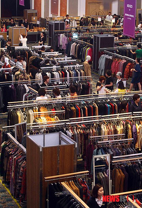 【부산=뉴시스】 하경민 기자 = 23일 오전 부산 롯데호텔 3층 크리스탈볼룸에서 롯데백화점 주최로 열린 '해외명품대전'을 찾은 시민들이 상품을 구입하고 있다. 롯데백화점 부산본점은 이날부터 26일까지 해외명품 72개 브랜드에서 내놓은 100억원 상당의 상품을 최대 70% 할인 판매한다.