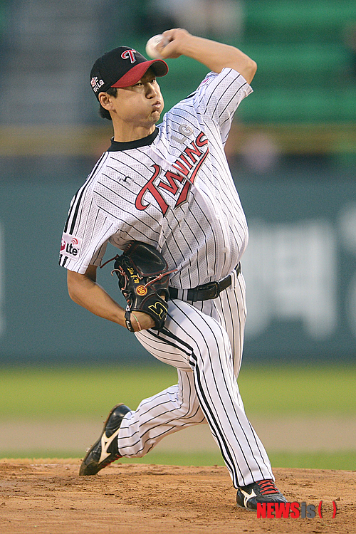 【서울=뉴시스】김인철 기자 = 10일 오후 서울 잠실야구장에서 열린 2012 팔도 프로야구 LG 트윈스와 KIA 타이거즈의 경기에서 LG 선발 신재웅이 역투하고 있다.