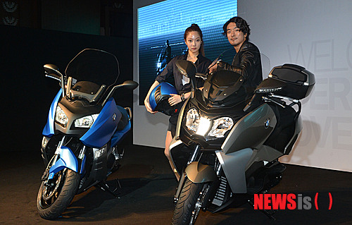 【서울=뉴시스】김영욱 기자 = BMW모토라드(대표 김효준)가 12일 오전 서울 중구 반얀트리 클럽 앤 스파에서 개최한 도시형 '맥시 스쿠터(MAXI Scooter)' 런칭 행사에 배우 김민준이 BMW C600 Sport와 BMW C650 GT를 선보이고 있다.