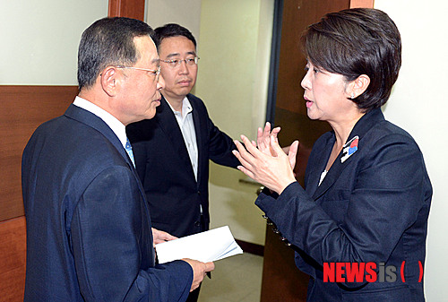 정옥임 위원과 대화 나누는 안대희 새누리당 정치쇄신특위원장