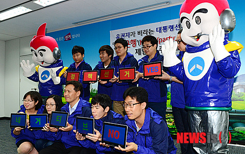 【서울=뉴시스】박동욱 기자 = 18대 대통령선거 90일을 하루 앞둔 19일 오전 종로구 서울시선거관리위원회에서 직원들이 태블릿PC를 이용한 정책선거 퍼포먼스를 하고 있다.