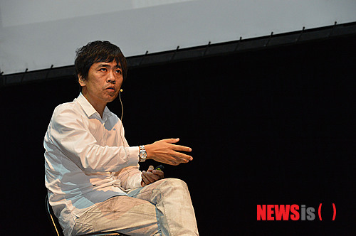 【서울=뉴시스】김영욱 기자 = 20일 오후 서울 서대문구 대현동 이화여자대학교 대강당에서 열린 제12회 김옥길 기념강좌 '건축의 지역성을 다시 생각한다, Rethinking Locality in Architecture'에 초청된 일본 건축가 니시자와 류(Nishizawa Ryue) SANAA 공동대표가 뉴욕과 런던 등 활동지역의 정체성을 반영한 건축세계에 대해 강연하고 있다.