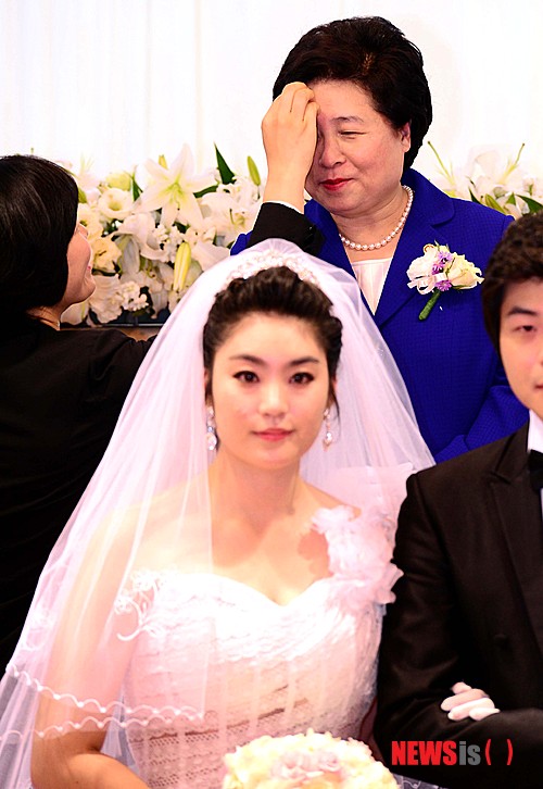 【서울=뉴시스】전신 기자 = 김금래 여성가족부 장관이 21일 오후 서울법원종합청사에서 열린 '내 힘으로 하는 참 혼인식 100쌍' 캠페인에 참여한 신랑신부의 결혼식에서 기념촬영을 하기 전 화장을 고치고 있다.