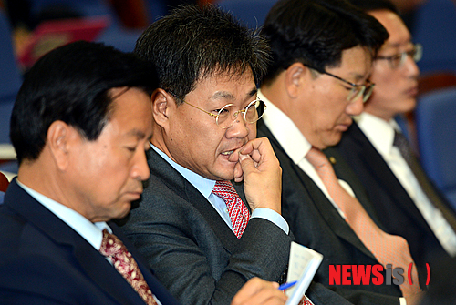 불안한 표정의 정문헌 새누리당 의원