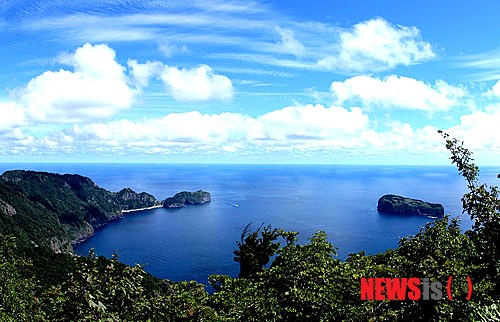 【포항=뉴시스】강진구 기자 = 경북 울릉군은 동해의 유일한 도서지역인 울릉도와 독도가 지난 7월 국가지질공원 제도 도입 이후 제주도와 함께 국내 최초로 국가지질공원으로 선정됐다고 30일 밝혔다.사진은 울릉도 내수전망도에서 바라본 죽도와 선목해안 전경. (사진=울릉군 제공)