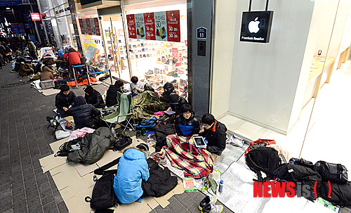 밤새 럭키백 이벤트 기다리는 애플 매니아들