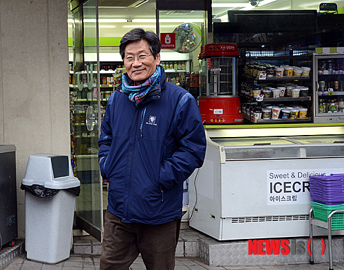 【서울=뉴시스】조수정 기자 = 김능환 전 중앙선거관리위원장이 7일 오전 서울 동작구 상도동의 부인 김문경씨가 운영하는 작은 편의점에서 일을 돕고 있다.
