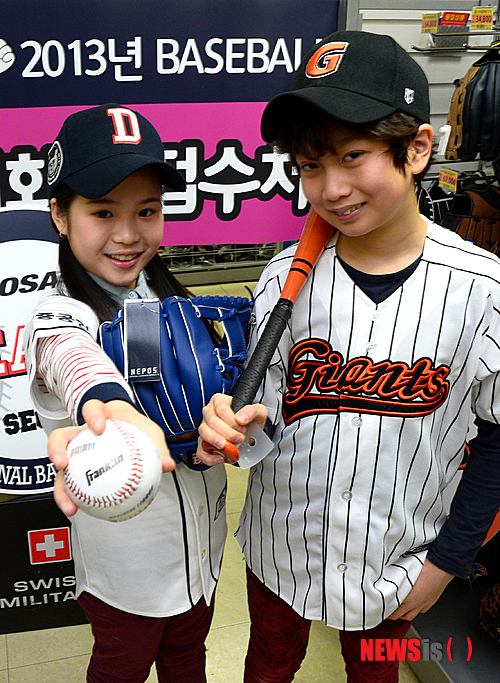 【서울=뉴시스】박주성 기자 = 12일 오전 서울 중구 봉래동 롯데마트 서울역점에서 지난 주말 시범경기가 시작 된 프로야구의 열풍에 발 맞춰 롯데, 두산 2개 구단의 어린이 회원 모집을 홍보하고 있다.
