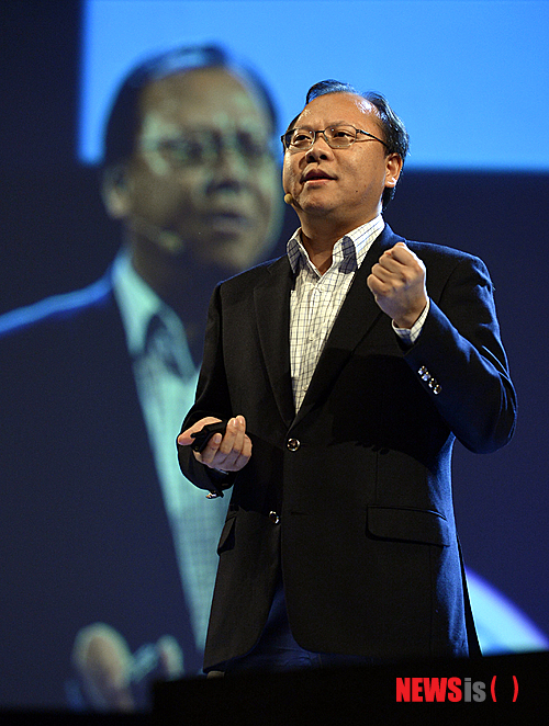 【서울=뉴시스】조종원 기자 = 22일 서울 광진구 능동로 세종대학교에서 열린 삼성그룹의 열정樂서 콘서트에서 한승환 삼성 SDS 인사팀장이 '??음, 스토리를 만들어라'를 주제로 강연을 하고 있다. (사진=삼성그룹 제공)