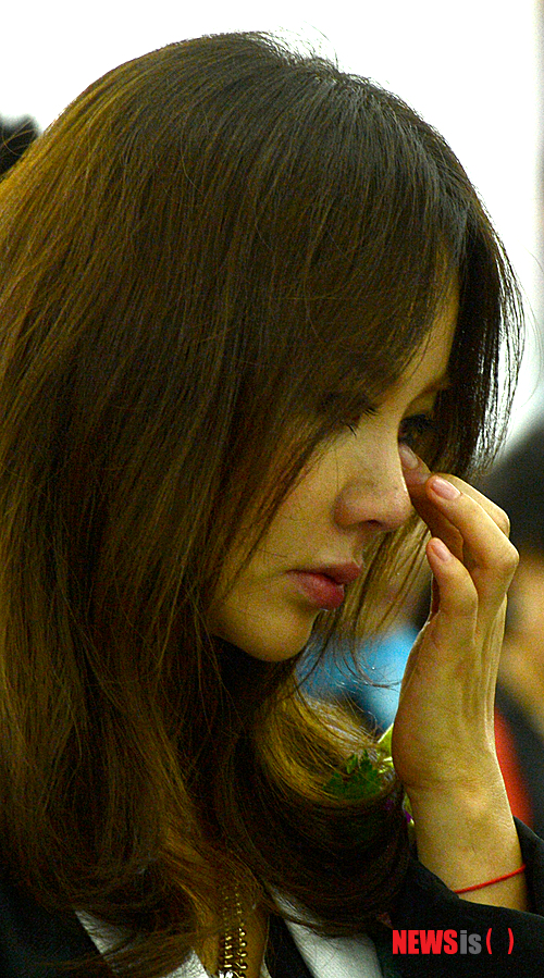 【서울=뉴시스】박상훈 기자 = 경찰청과 보건복지부가 제7회 실종아동의 날(25일)을 하루 앞둔 24일 서울시민청 태평홀에서 기념행사를 연 가운데 영화 '몽타주'의 주연배우 엄정화가 실종아동 부모의 편지낭독을 들으며 눈물을 훔치고 있다.