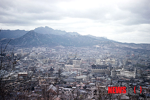【서울=뉴시스】서울시립대박물관(관장 김종섭)는 4일 서울 동대문구 서울시립대박물관 본관에서 `1950's, 서울의 기억'전을 개막했다. '1950’s, 서울의 기억’展은 어느 사진가에 의해 기록된 1950년대 서울의 모습을 담은 사진전이다. 사진은 남산에서 본 서울전경. (사진=서울시립대박물관 제공)