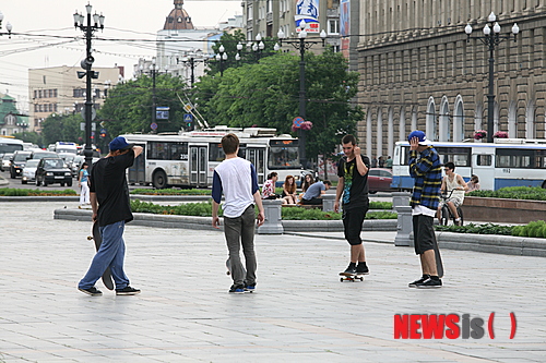 【하바로스크(러시아)=뉴시스】전형준 기자 = 햇살이 내리쬐는 30일 낮 기온이 34도까지 오르는 등 무더운 날씨를 보인 가운데 한적하고 조용한 도시 하바로프스크 레닌광장에서 청소년들이 휴식을 하며 즐거운 시간을 보내고 있다. 2013.06.30