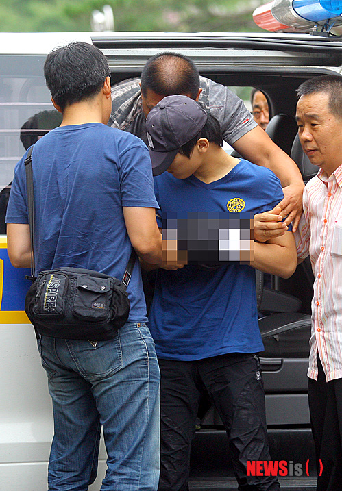 【수원=뉴시스】강종민 기자 = 경기 용인에서 10대 소녀를 성폭행하고 살해한 뒤 시신을 훼손한 10대 피의자 심모군이 영장실질심사를 받기 위해 12일 오전 경기 수원지방법원으로 들어서고 있다. 2013.07.12