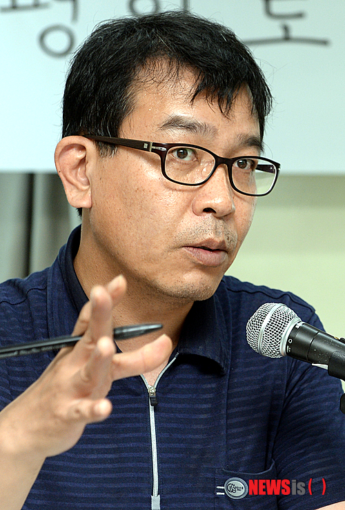 【서울=뉴시스】조성봉 기자= 25일 오후 서울 중구 국가인권위원회 배움터에서 한반도평화연석회의 주최로 열린 한반도 평화정책 보고서 발표회에 참석한 김종대 디펜스21 플러스 편집장이 주제 발표를 하고 있다. 2013.07.25.