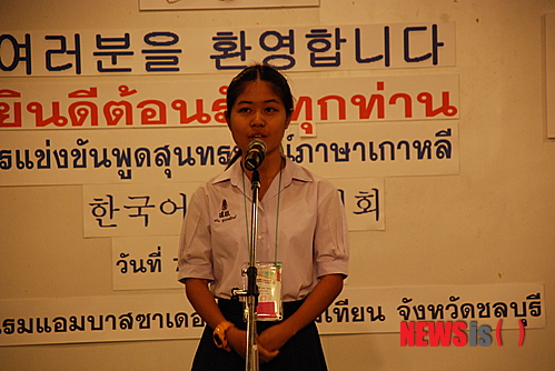 【파타야=뉴시스】박윤 특파원 = 7일 태국 파타야 엠버서더시티 좀티엔 호텔에서 한국외국어대학교, 주태국대한민국대사관과 대한민국교육부 주최로 열린 제1회 태국 청소년 한국어 말하기 대회에 참가한 태국 여학생이 한국어로 연설을 하고 있다. 2013.09.07 [email protected]
