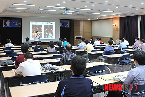 【창원=뉴시스】강경국 기자 = 지난 13일 경남 창원상공회의소에서 변화확신 아카데미 하동식 원장이 기업체 임직원들을 대상으로 '메디치 가문에서 배우는 리더십' 특강을 진행하고 있다. 2013.09.15. (사진=창원상의 제공)