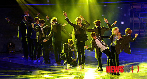 【서울=뉴시스】김진아 기자 = '제10회 2013 아시아송 페스티벌'이 열린 9일 오후 서울 송파구 잠실동 잠실 올림픽 주경기장에서 그룹 엑소가 공연을 하고 있다. 2013.10.09.