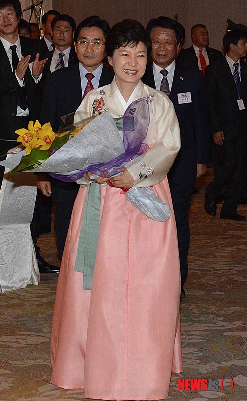 【자카르타(인도네시아)=뉴시스】김영욱 기자 = 인도네시아를 국빈 방문 중인 박근혜 대통령이 11일 오후(현지시간) 인도네시아 자카르타 샹그릴라 호텔에서 열린 동포 만찬 간담회에 참석하고 있다. 2013.10.11.