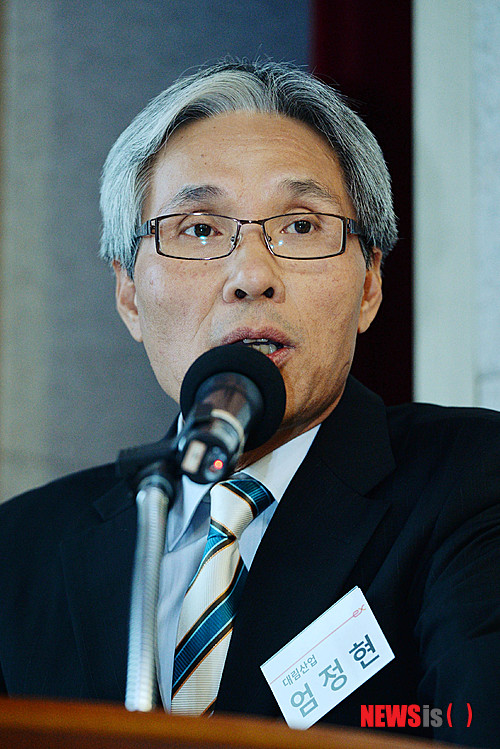 【화성=뉴시스】 박문호 기자 = 18일 오후 경기 화성시 동탄 인력개발원 대강당에서 '공감언론' 뉴시스와 한국도로공사가 공동으로 개최한 '제1회 전국 건설안전 경진대회‘에서 엄정현 대림산업 소장이 ‘SMART 안전관리’를 발표하고 있다.