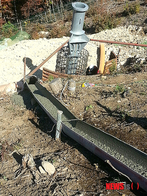 2차 콘크리트 타설 진행되는 밀양 송전탑