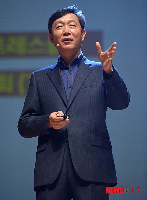 【서울=뉴시스】지난 11일 서울 서대문구 연세대 대강당에서 열린 삼성그룹 '열정樂서'에 참여한 강북삼성병원 신영철 교수가 강연을 하고 있다. 2013.11.12. (사진=삼성그룹 제공)